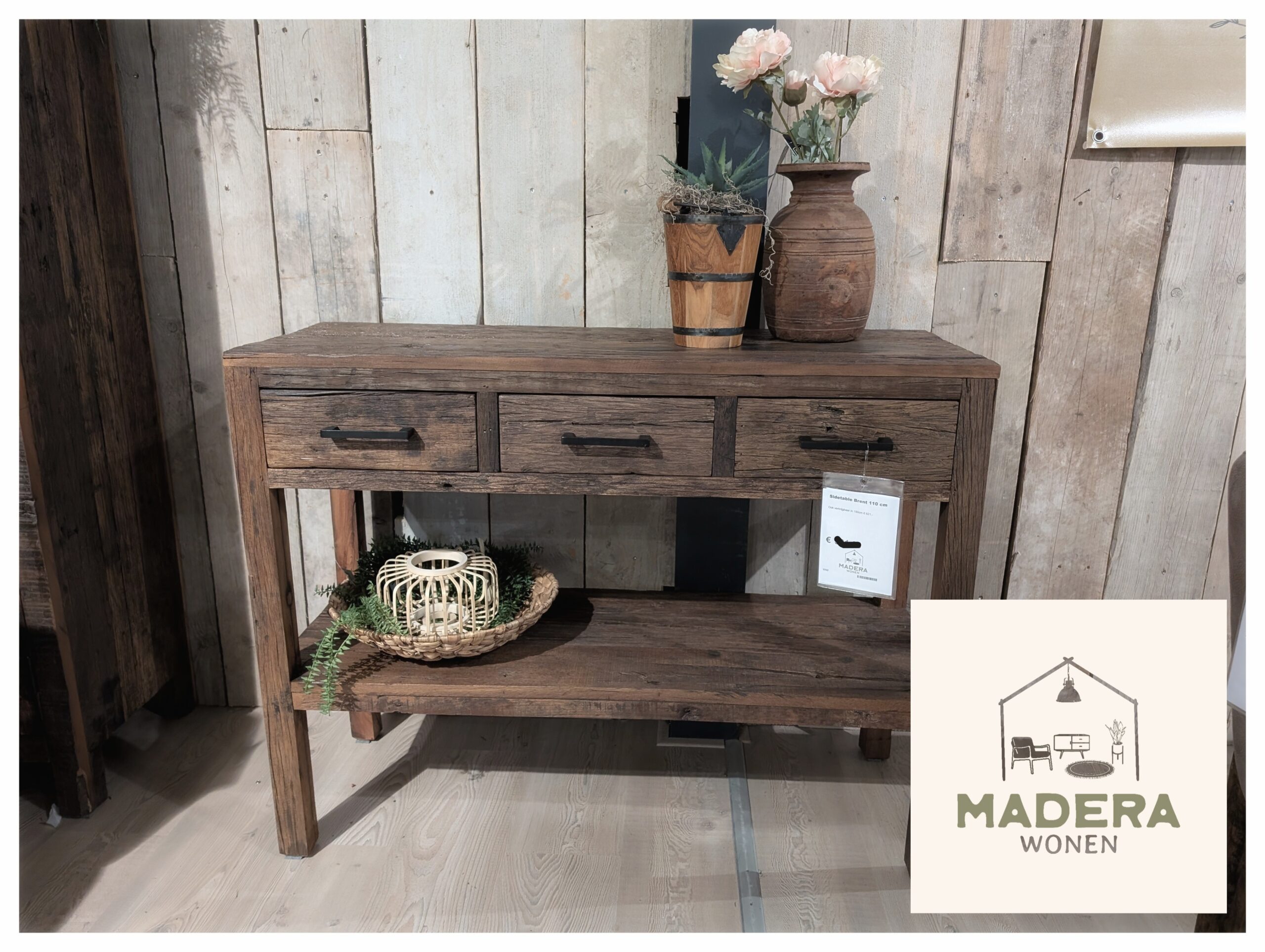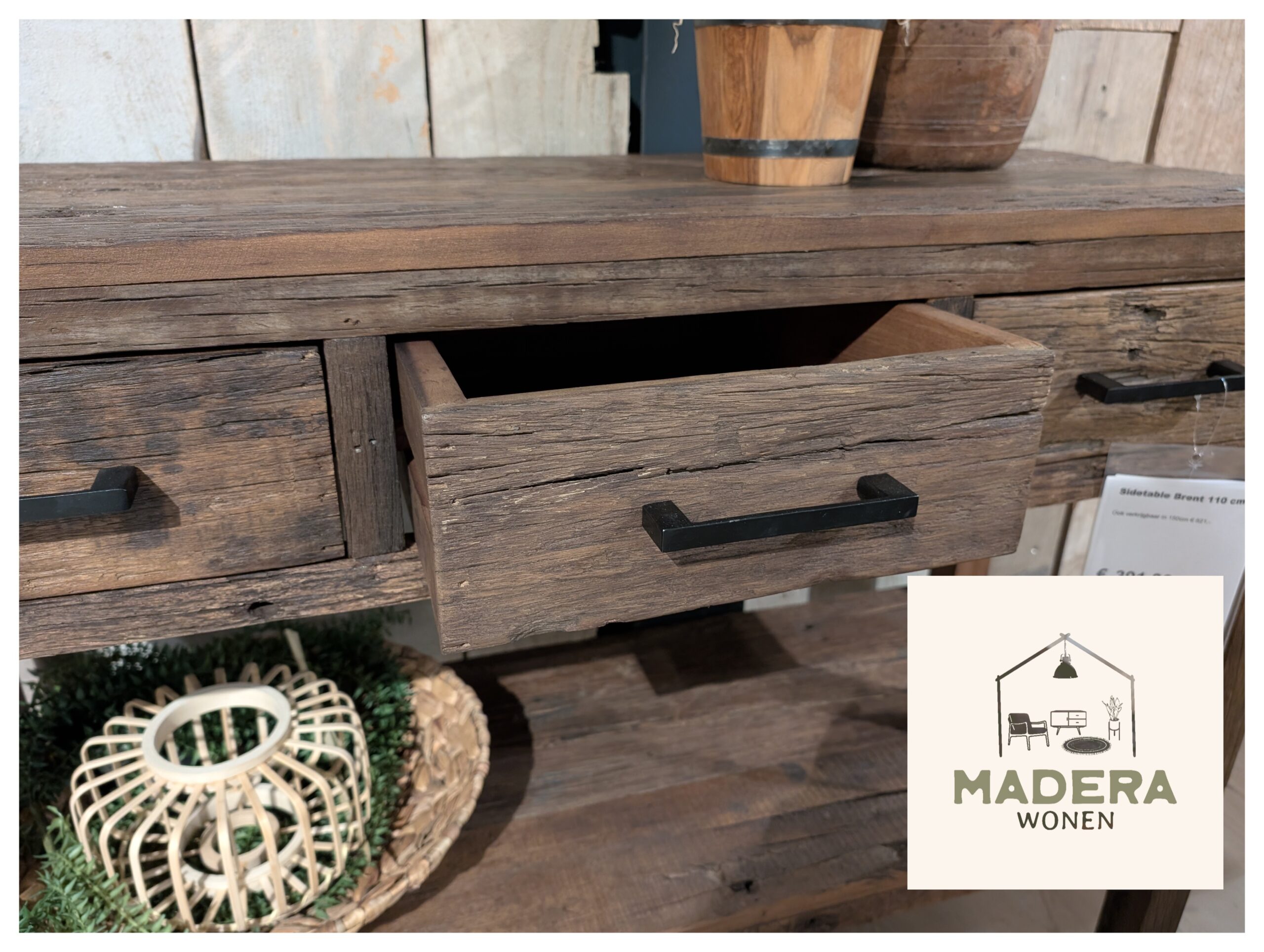Deze sidetable is verkrijgbaar in 2 afmetingen 110 en 150 cm