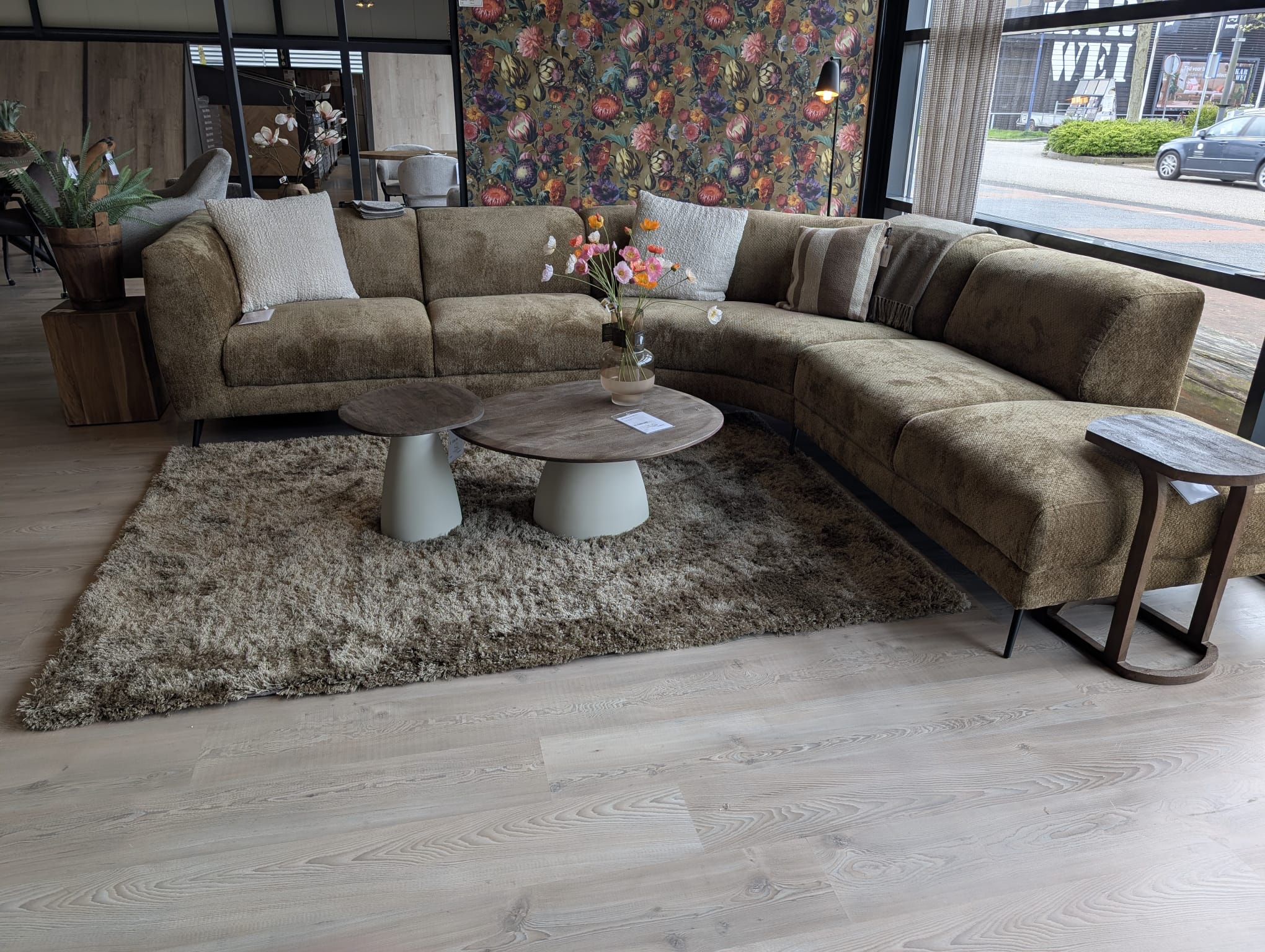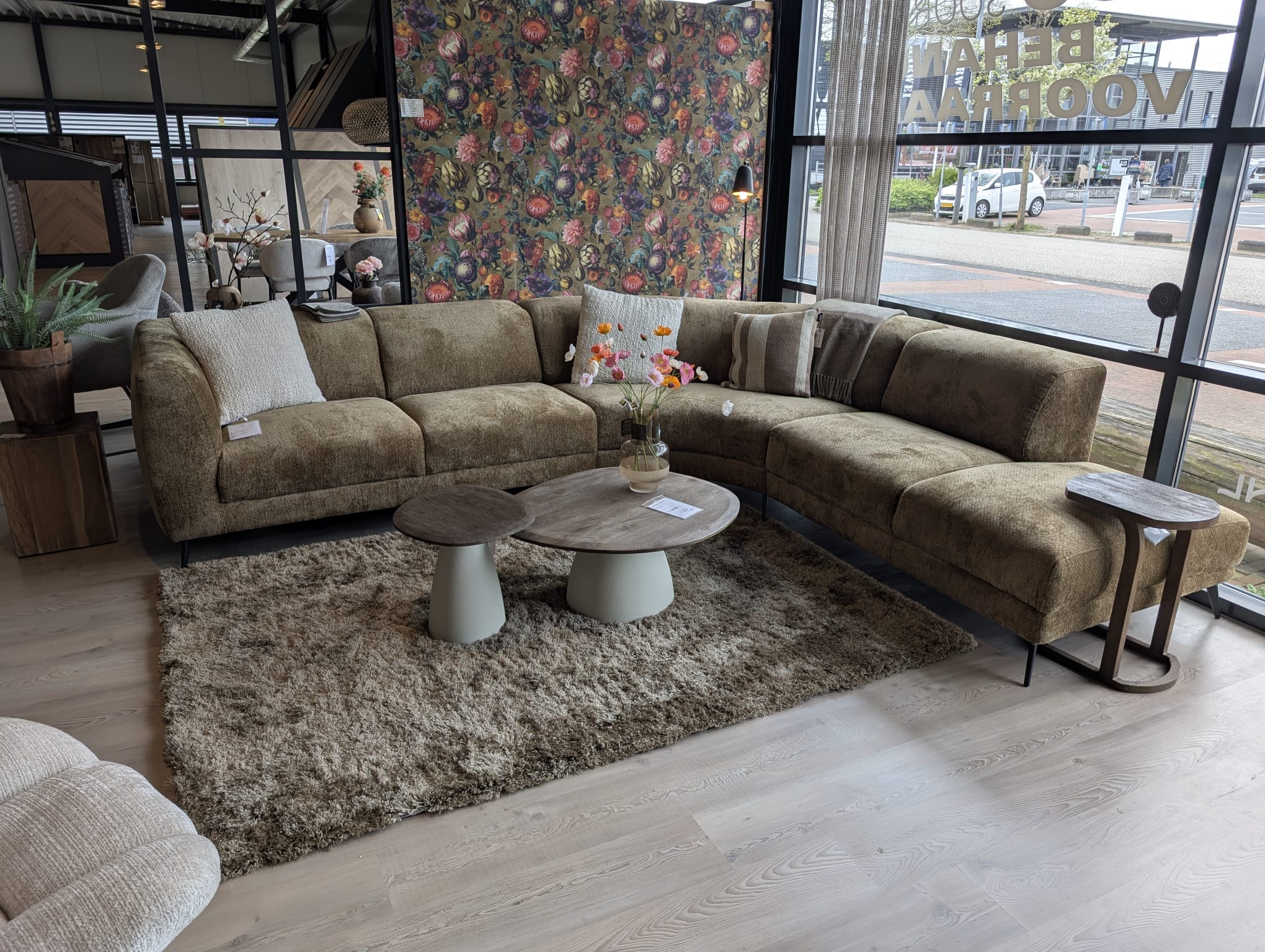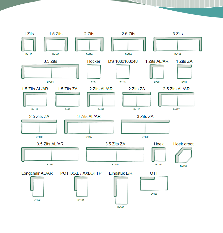 De opstelling zoals getoond is: 2,5 zits arm links, hoek groot, ott.