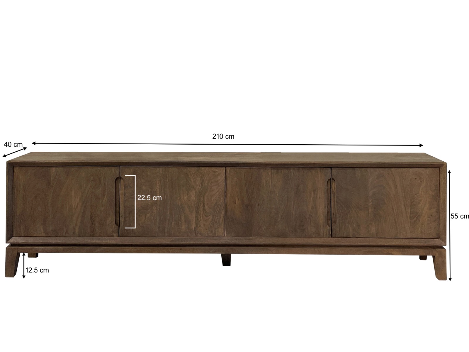 Het warme mangohout en de Malta-finish geven een natuurlijke, stijlvolle uitstraling. Met genoeg ruimte voor je tv, apparatuur en accessoires is dit meubel zowel praktisch als een echte blikvanger.