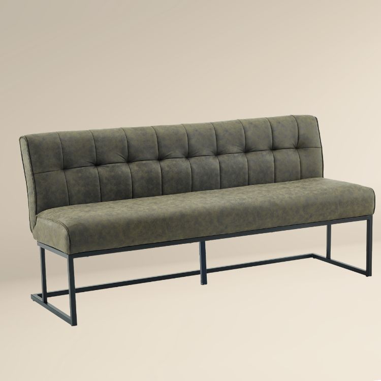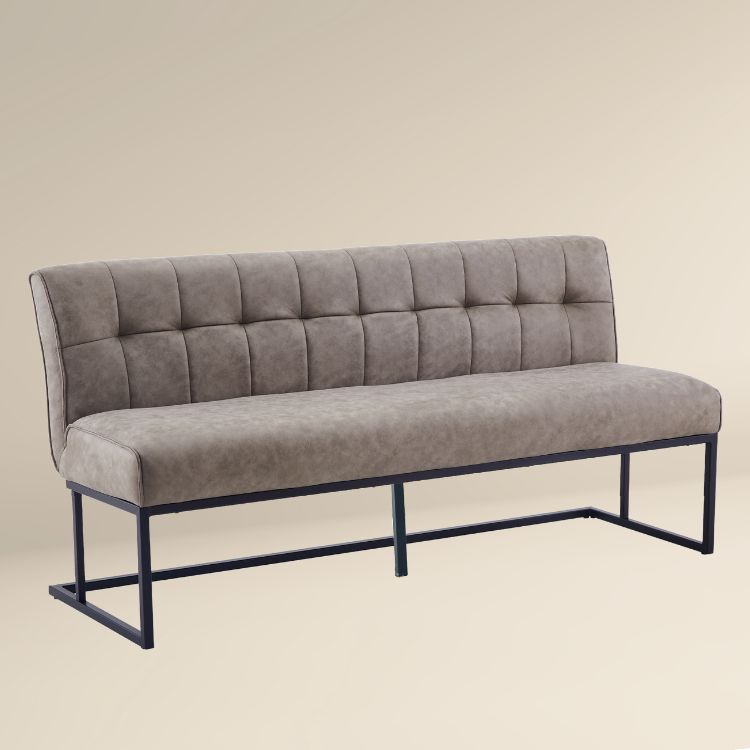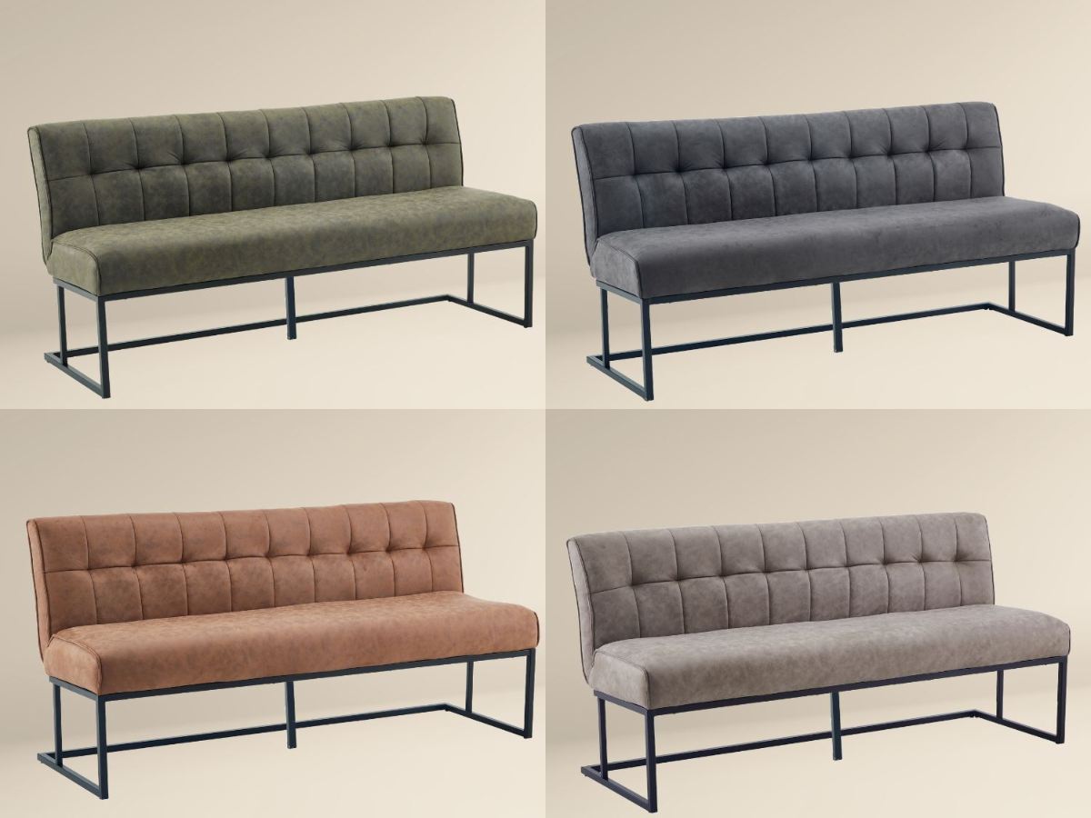 Deze eetkamerbank is verkrijgbaar in 4 kleuren. Grijs, groen, cognac en taupe.