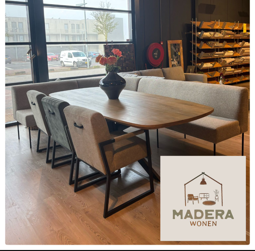 U kunt het helemaal naar wens samenstellen en zo een unieke eetkamerbank creëren.Op de laatste foto van de foto galerij kunt u alle mogelijke delen zien, waarmee u deze eetkamerbank kunt samenstellen. Een rechte hoek behoort ook tot de mogelijkheden of alleen 1 deel.De verschillende elementen van deze eetkamerbank zit met een krokodillenbek aan elkaar vast.