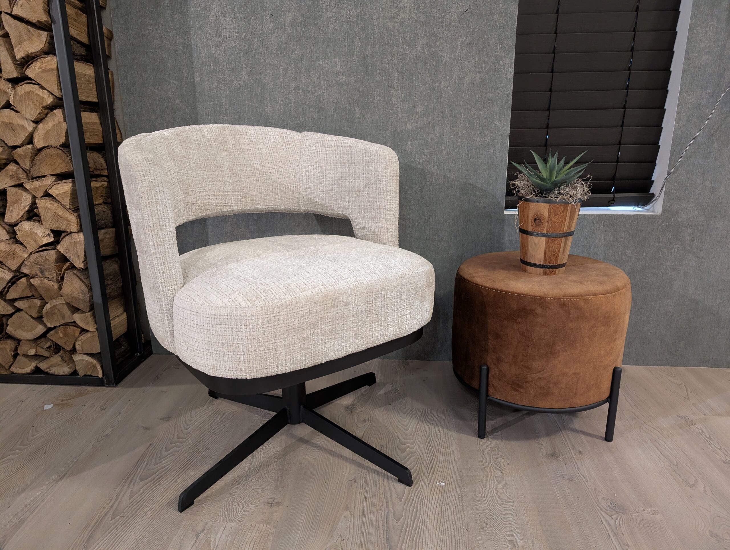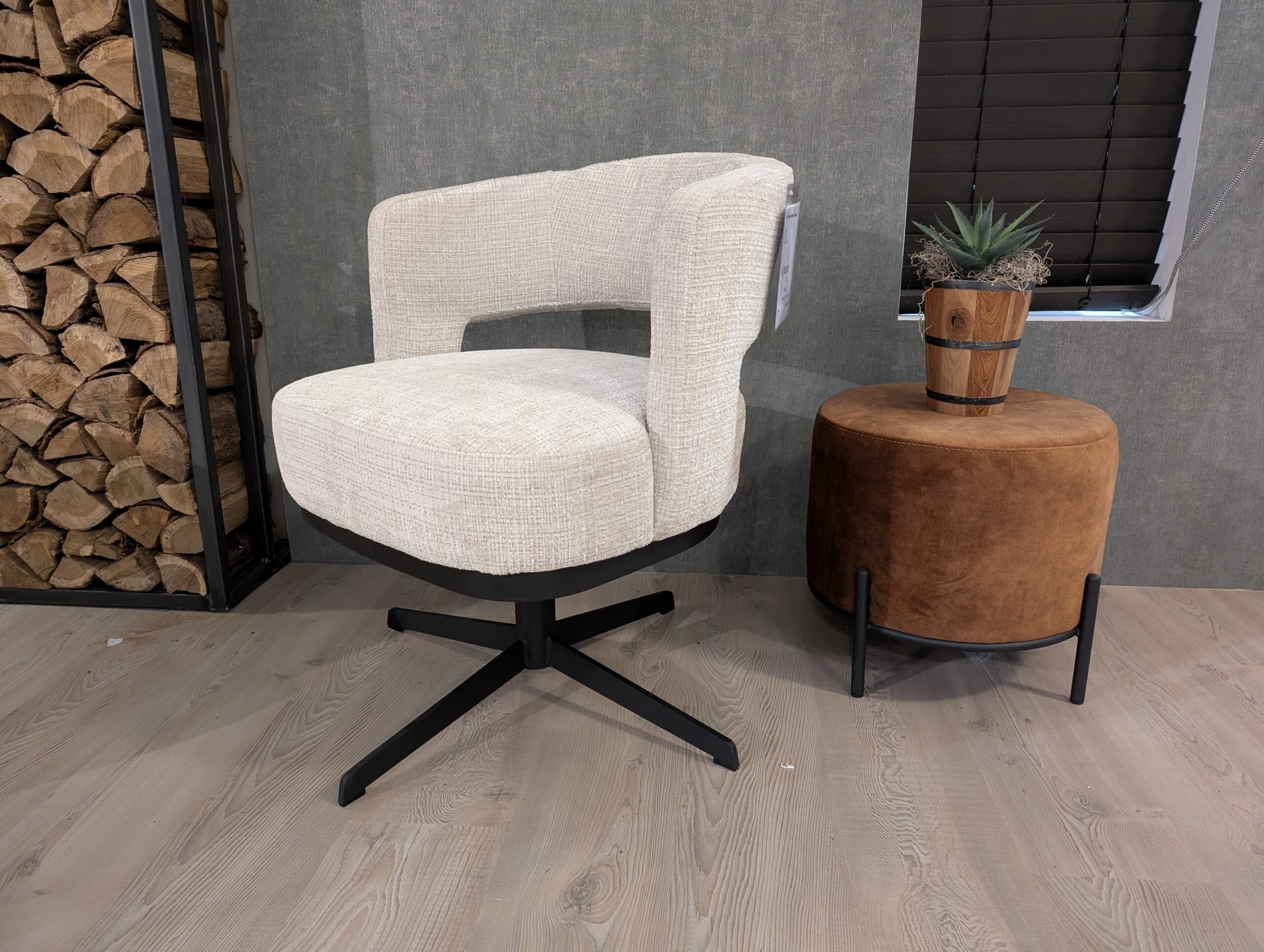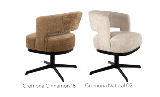 De Cremona-stof voelt zacht en luxe aan, en is verkrijgbaar in 3 stijlvolle kleuren, waardoor deze stoel eenvoudig te combineren is met verschillende interieurs. In de kleur cinnamon, naturel en salt and pepper.