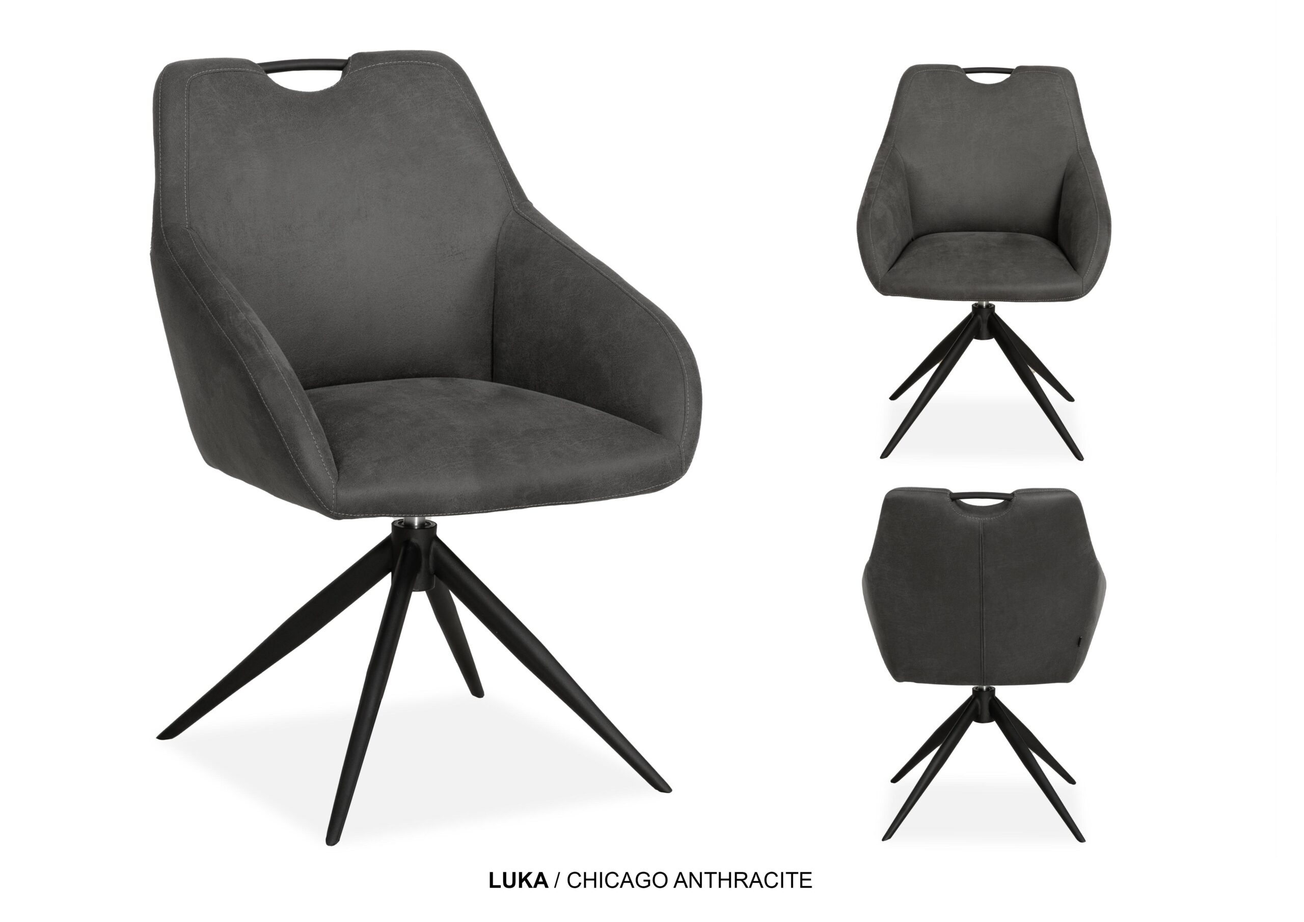 Deze eetkamerstoel Luca heeft een draaipoot. Het is een 360° auto return systeem.