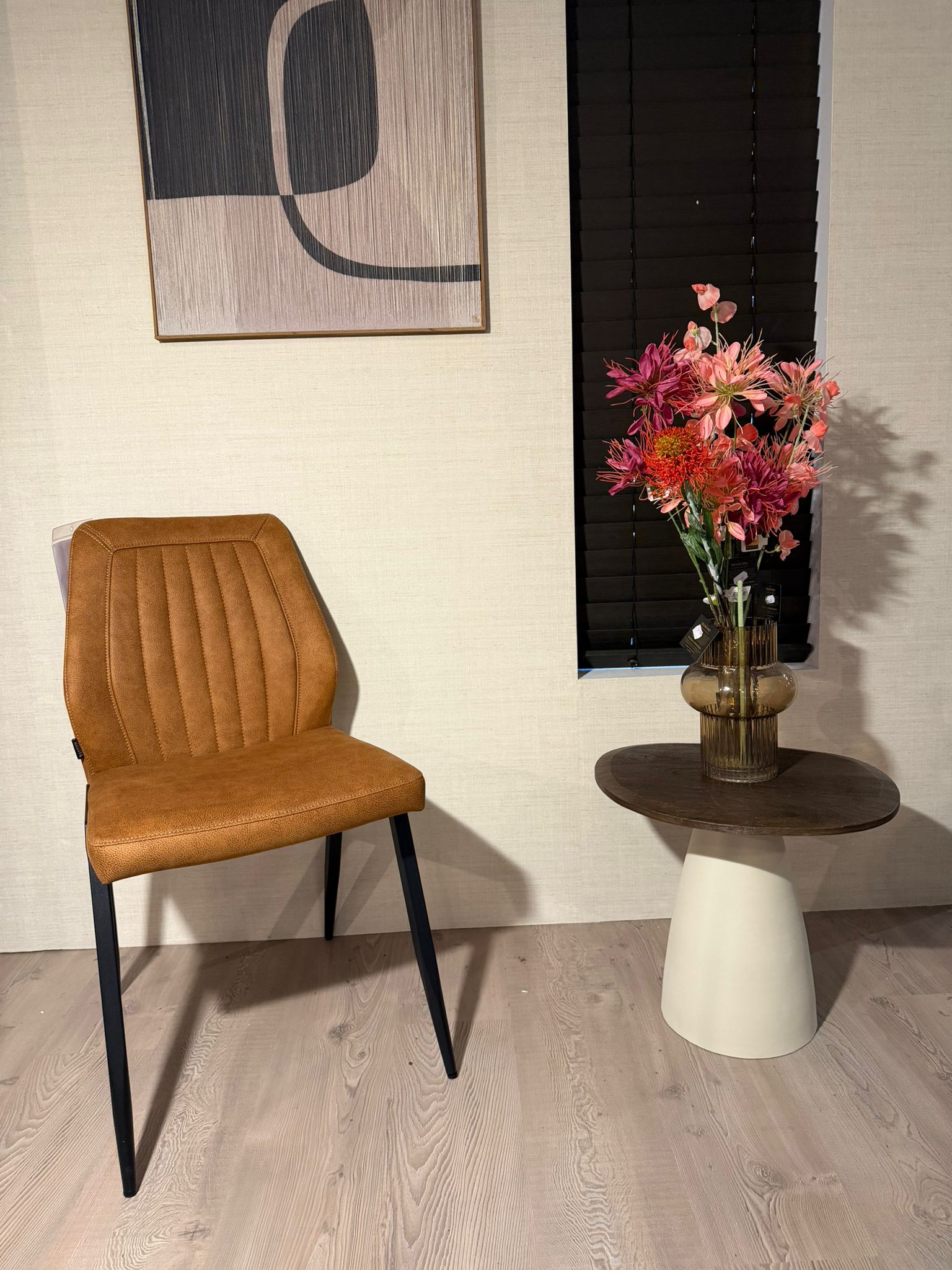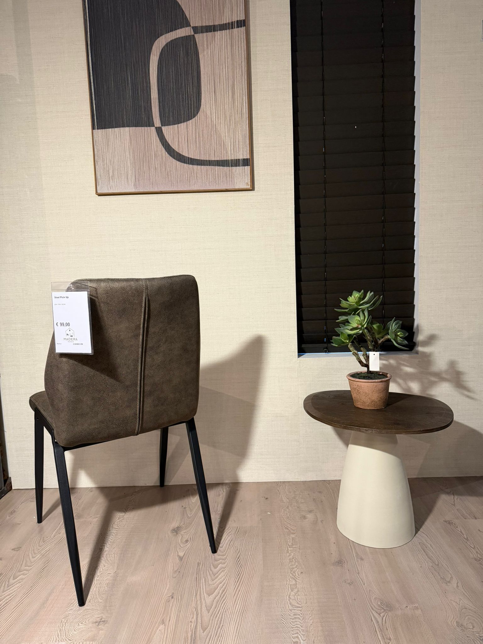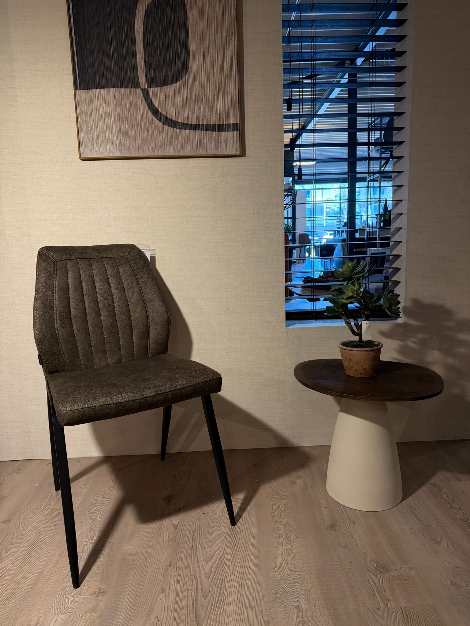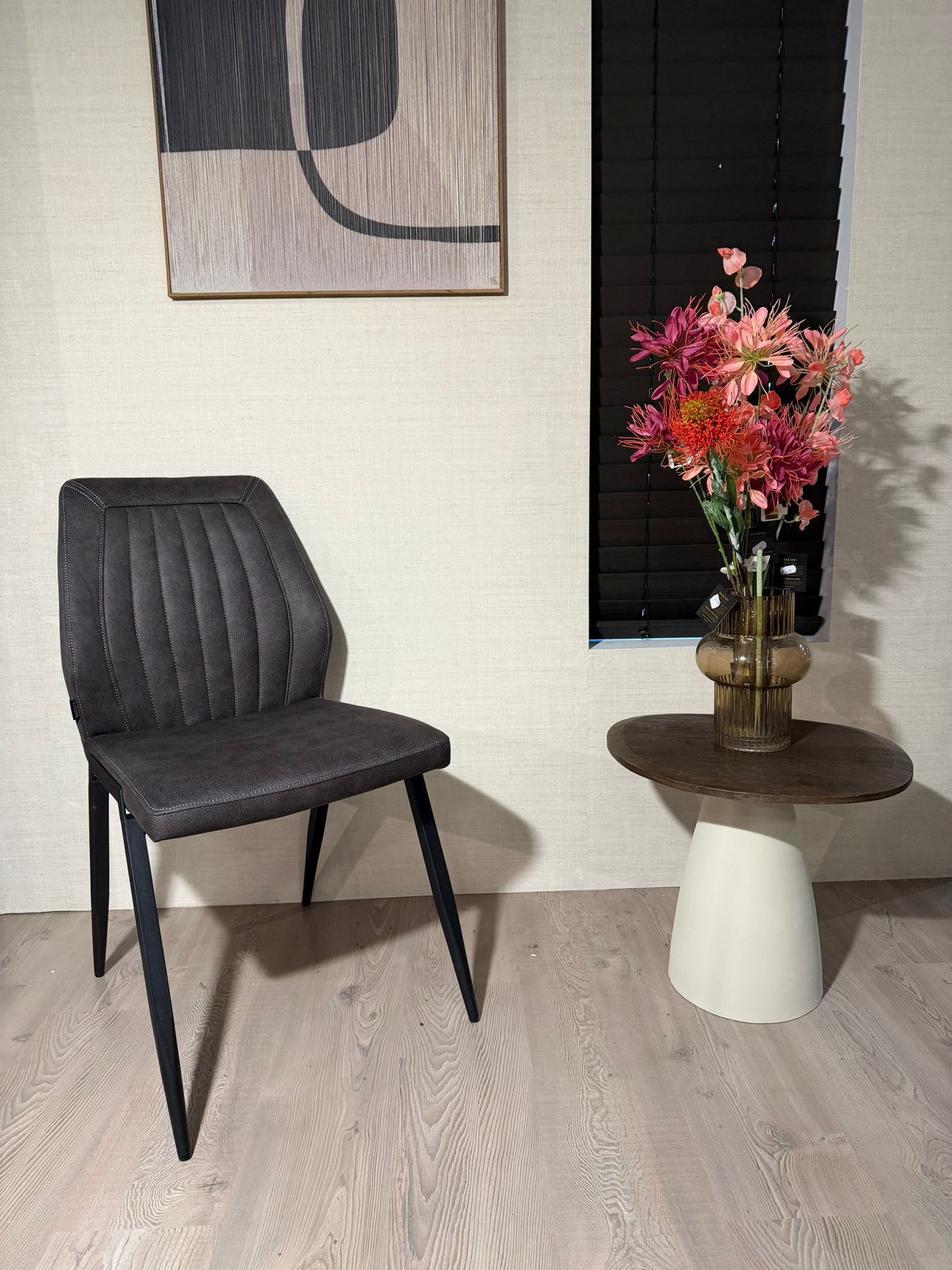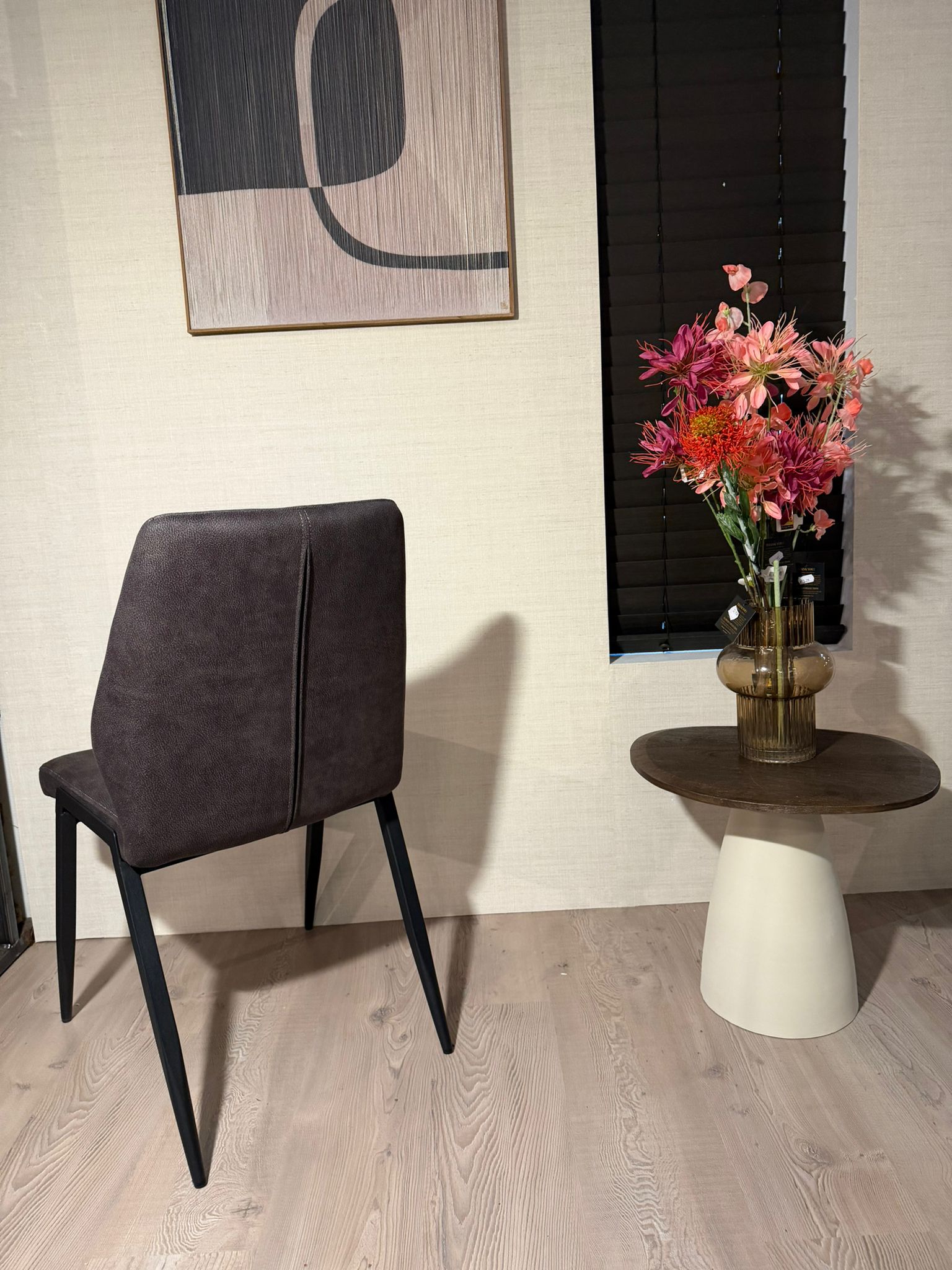 Deze eetkamerstoel Pickup is een lekker tijdloos model. Bekleed met microvezel stof en een onderstel van zwart gecoat staal.