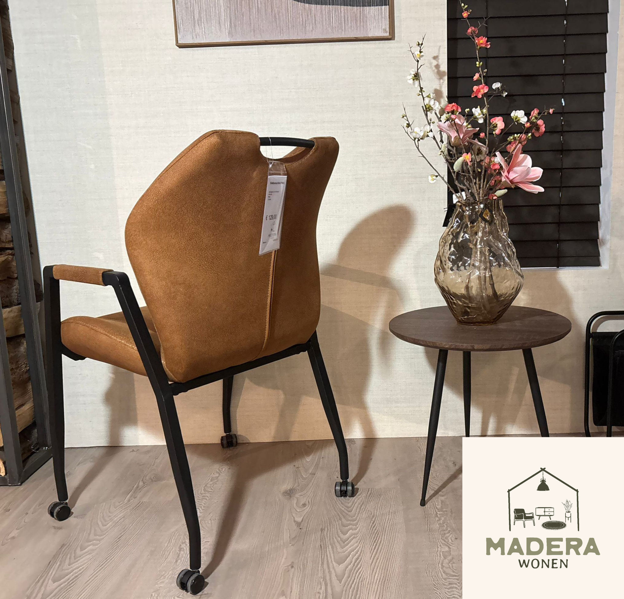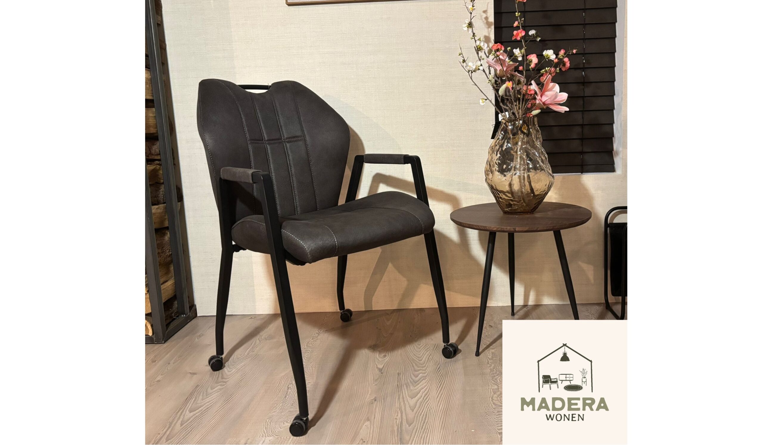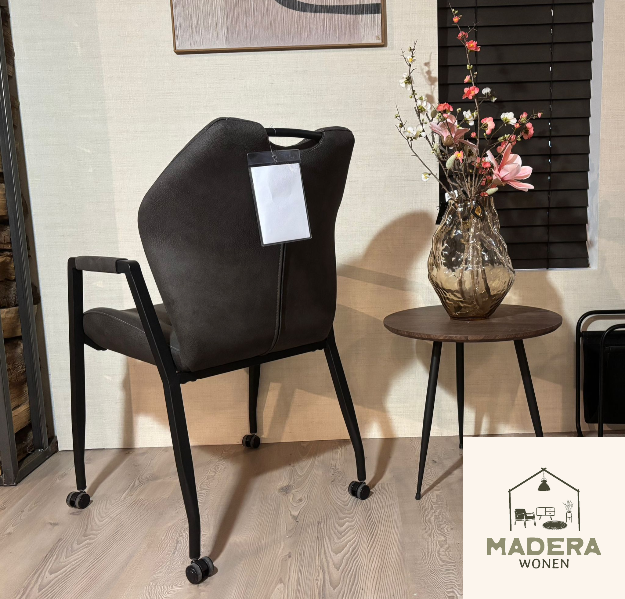 Deze eetkamerstoel heeft bijna alles, een mooi handvat om te stoel aan te kunnen trekken zonder dat de stoel vies wordt en wieltjes zodat hij makkelijk aan de tafel schuift. Ook een heerlijke microvezel stof. Dit is zeker een veelzijdige stoel.