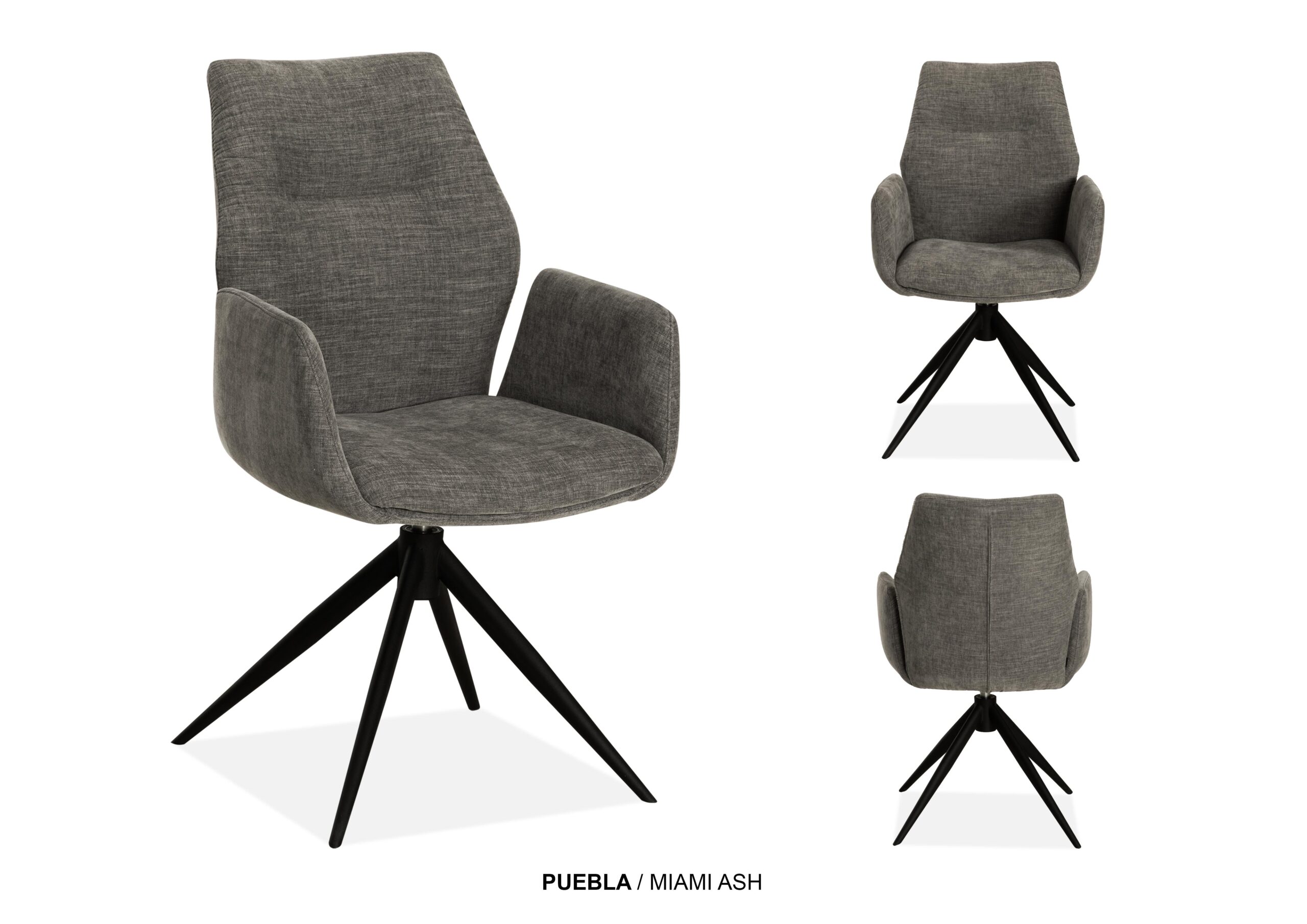 Eetkamerstoel Puebla is een comfortabele eetkamerstoel, is hetzelfde model als de Palmas, maar dan met armleuning. U kunt deze 2 stoelen ook goed met elkaar combineren aan uw eettafel. Het onderstel van deze eetkamerstoel betreft ook een 360 graden autoreturn systeem.