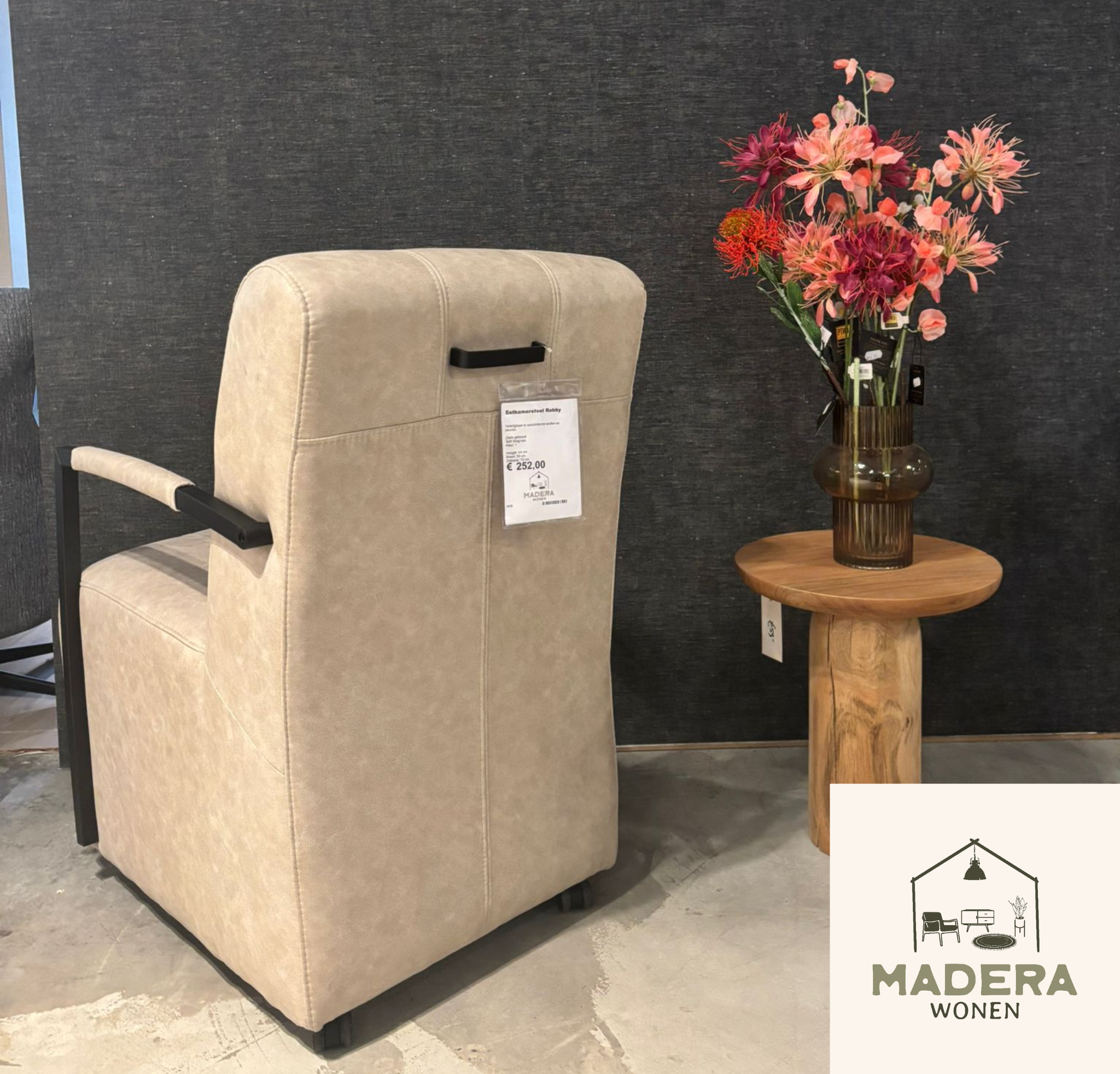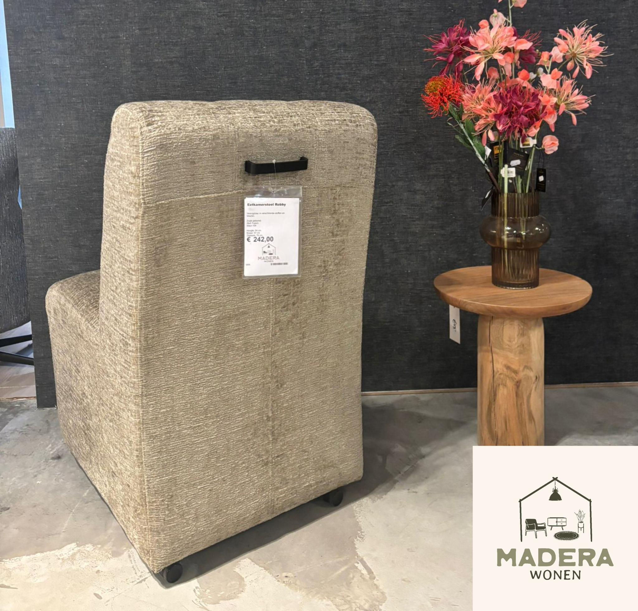 Eetkamerstoel Robby is een veelzijdige stoel met veel mogelijkheden. Zo kun je kiezen uit verschillende stoffen en kleuren, en is de stoel verkrijgbaar met of zonder armleuning. Hierdoor stel je Robby helemaal samen naar jouw wensen. Kom gerust langs om alle opties te bekijken.Wij hebben drie verschillende soorten in de winkel staan.