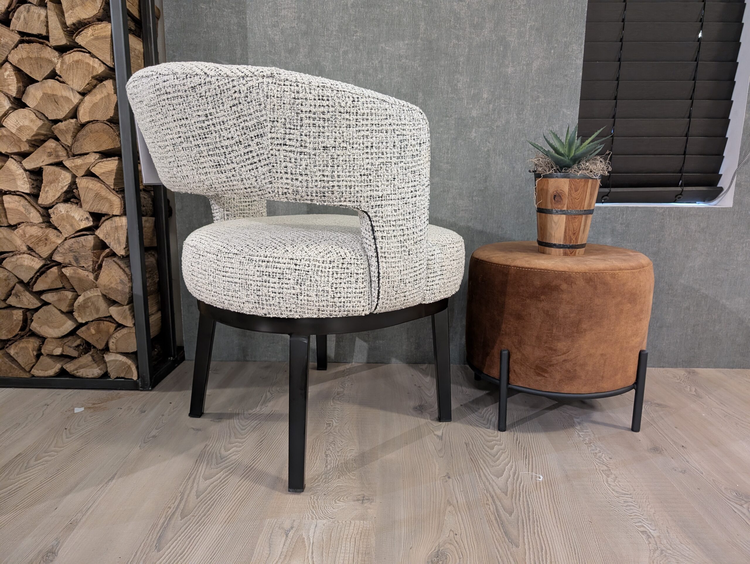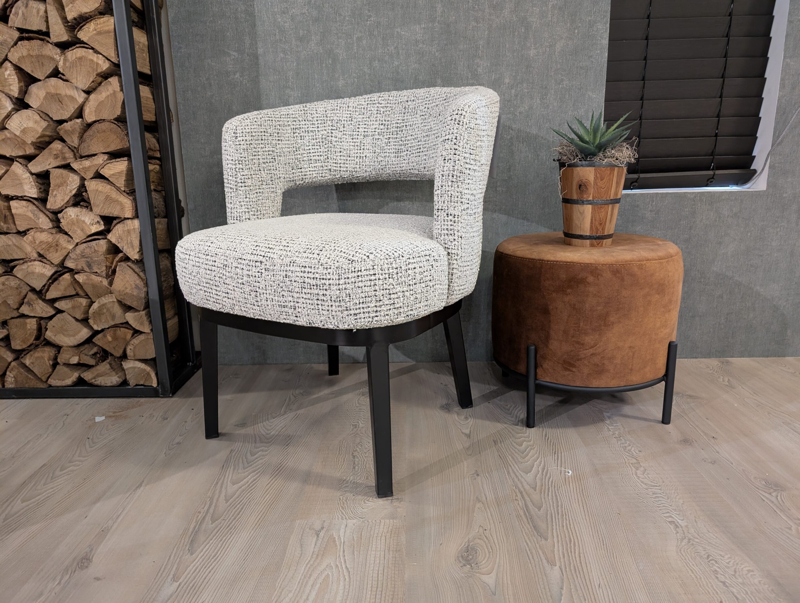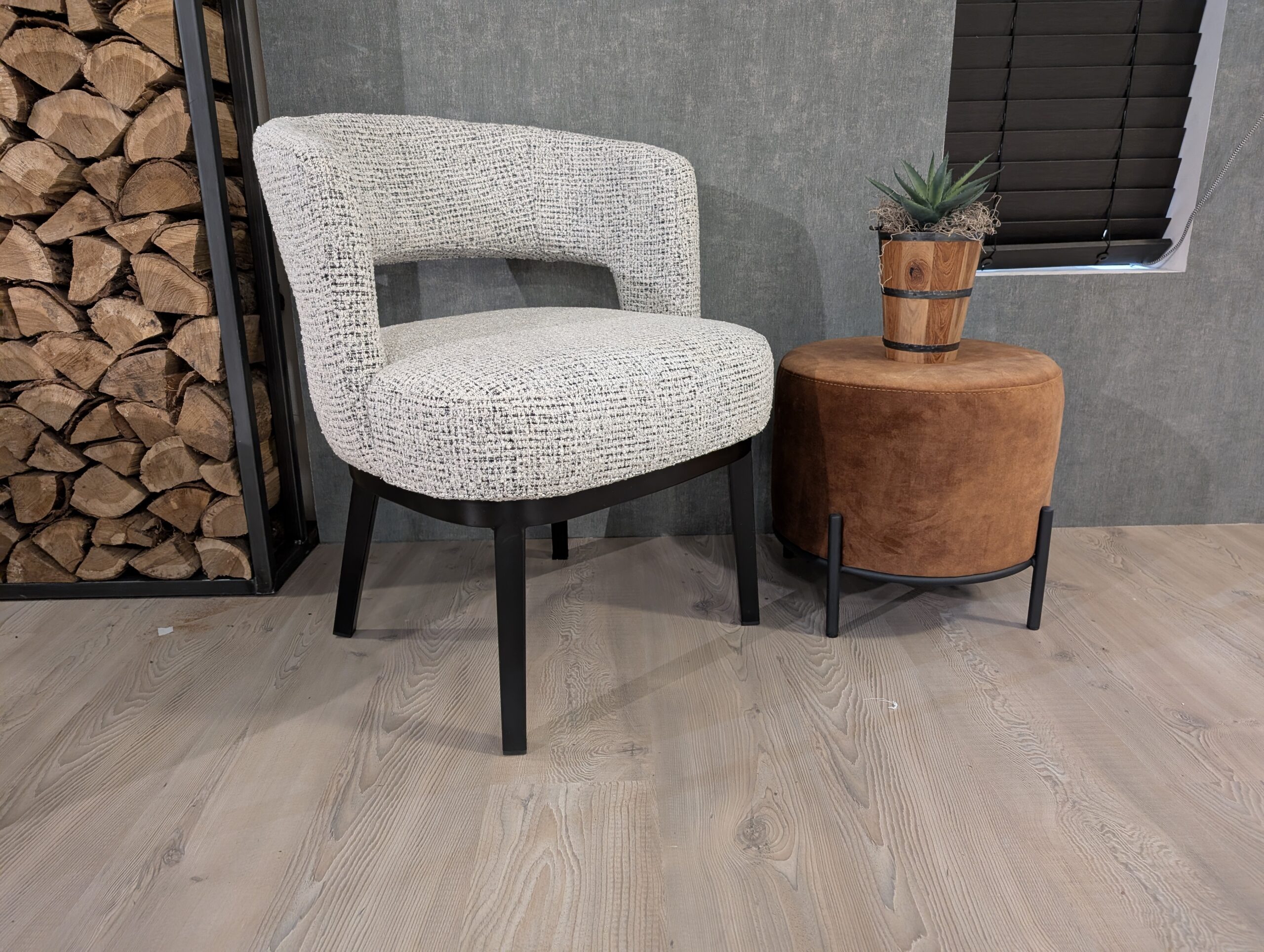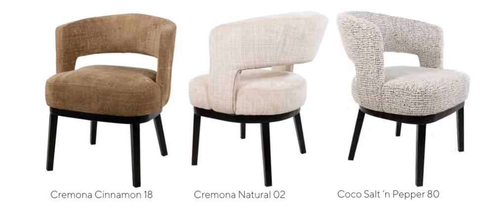 De Cremona-stof voelt zacht en luxe aan, en is verkrijgbaar in 3 stijlvolle kleuren, waardoor deze stoel eenvoudig te combineren is met verschillende interieurs. In de kleur cinnamon, naturel en salt and pepper.
