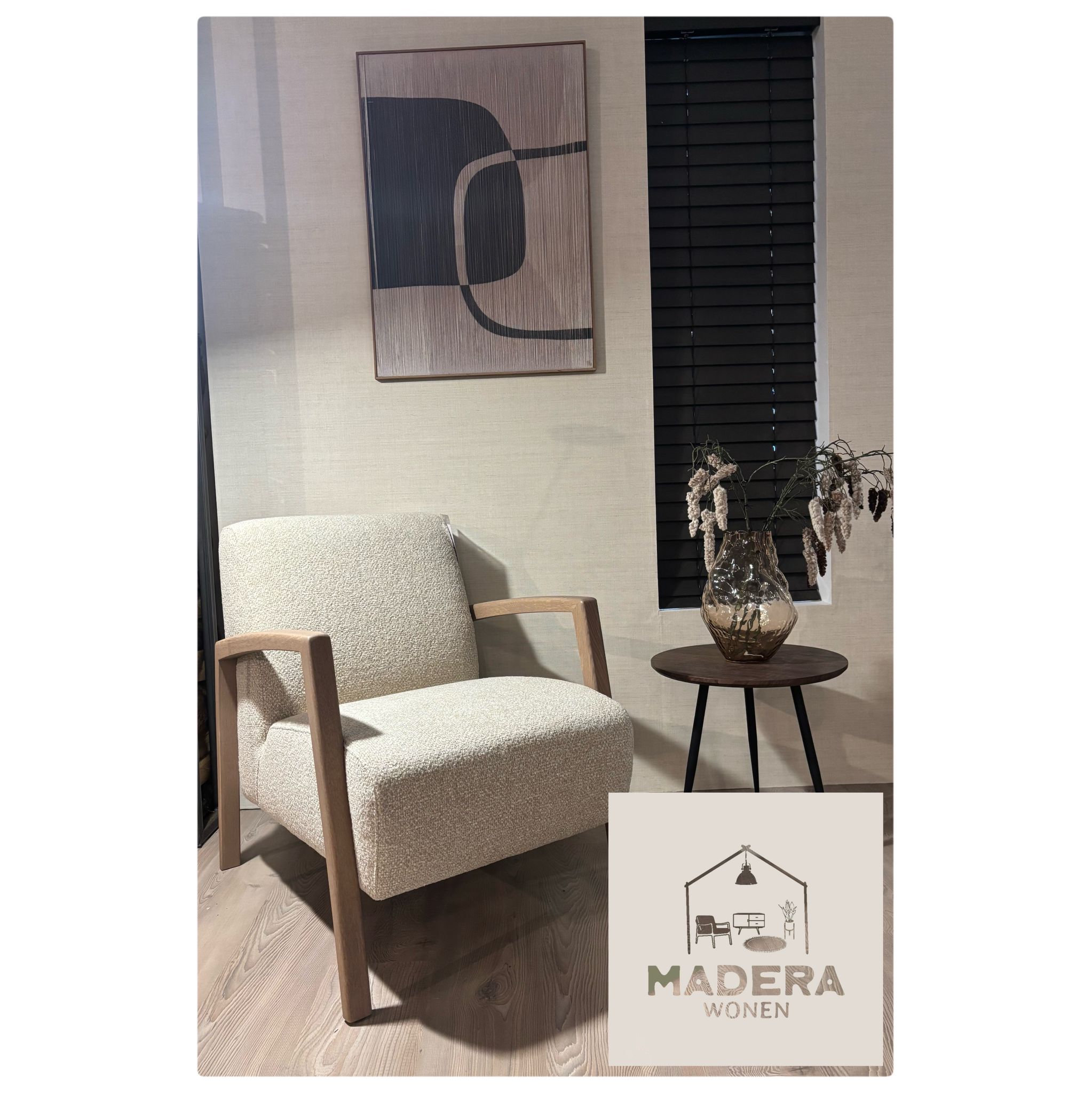 Voor de armleuning is er keuze uit een metalen of een houten armleuning. Op de foto is de houten armleuning te zien. De armleuningen zijn daarnaast verkrijgbaar in verschillende kleuren. Bekijk de foto’s om de verschillende armleuning opties te zien.