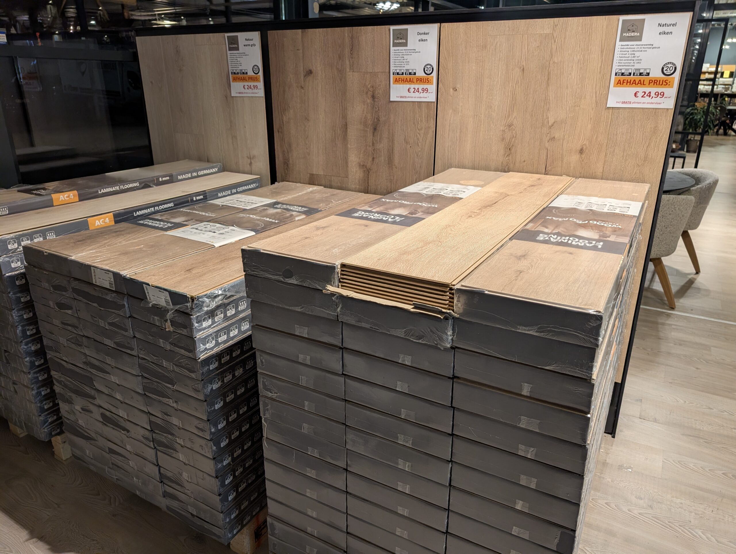 Alle prijzen van de laminaat vloeren zijn inclusief ondervloer en plakplinten. Heeft u een andere ondervloer nodig? Dan is dat zeker mogelijk, die hebben we ook op voorraad.